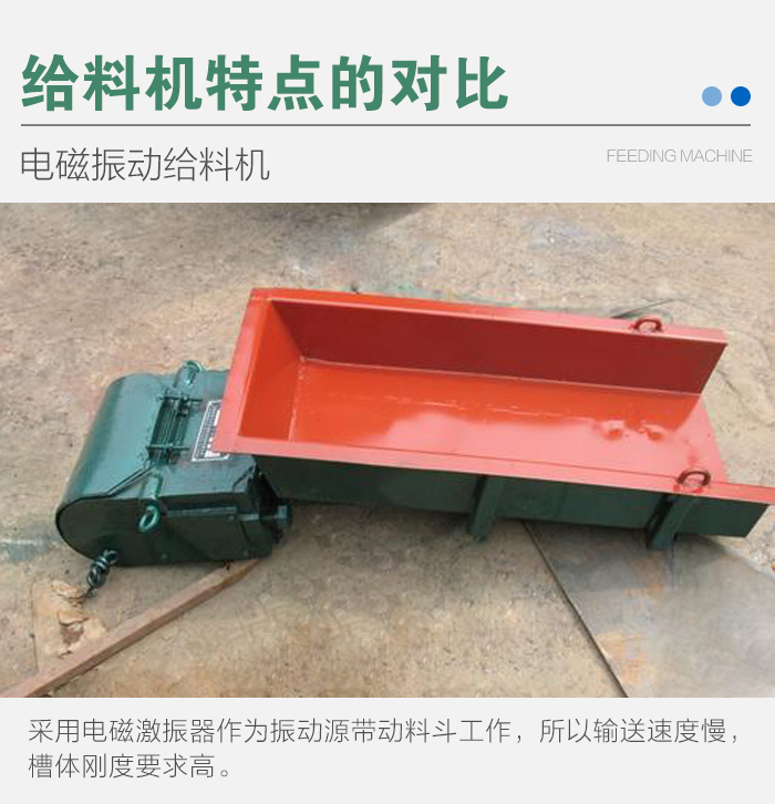 電磁振動給料機是以電磁頭作為振源的給料設備,振動頻率高,振幅小,給料量較大,但不便于維修,如果電磁頭出現問題,給料機就可能停用!