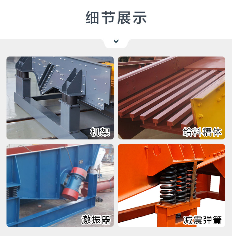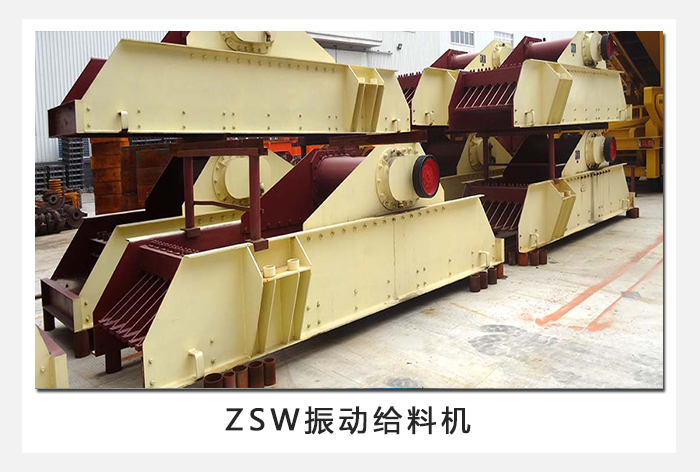 ZSW系列振動給料機主要用于粗碎破碎機前連續、均勻給料,同時可篩分細料,使破碎機能力增大。該機采用雙偏心軸激振器的結構特點,使設備能夠承受住大塊物料下落的沖擊,給料能力大。在生產流程中可以把塊狀、顆粒狀物料從貯料倉中均勻、定時、連續地送到受料裝置中去,從而防止受料裝置因進料不均而產生死機的現象,延長了設備使用壽命。可分為鋼板結構和篦條結構兩種,鋼板結構的給料機多用于砂石料生產線,將物料全部均勻地送入破碎設備;篦條結構的給料機可對物料進行粗篩分,使系統在配制上更經濟合理,在破碎篩分中已作為必不可少的設備。