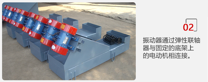 2.振動器通過彈性聯軸器與固定的底架上的電動機相連接。